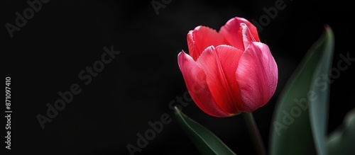 Single Red Tulip on Black Background. Minimalist Floral Photography