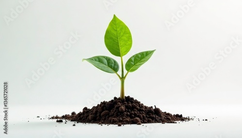 Single sapling with visible roots, clean white backdrop , small, green