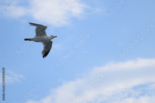 Single seagull in flight at Alexandroupolis, Greece, Aegean sea
