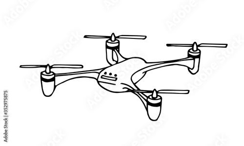 single simple postal drone, modern air digital machine for delivering & surveillance, vector illustration with black contour lines isolated on a white background in a hand drawn style