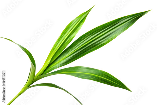Single tropical plant stem with long variegated green leaves isolated with transparent background