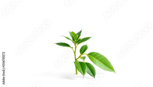 Single vibrant green plant, isolated on pure white backdrop, leaves, background