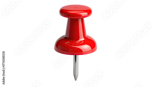 Single, vibrant red pushpin isolated on a black background