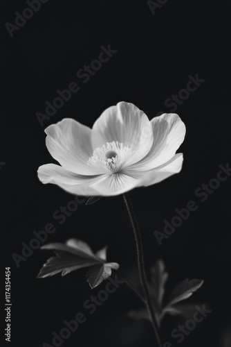single white flower with delicate petals and hint of light, creating serene atmosphere