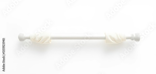 Single, white-ended curtain rod isolated on white background, product shot, interior design
