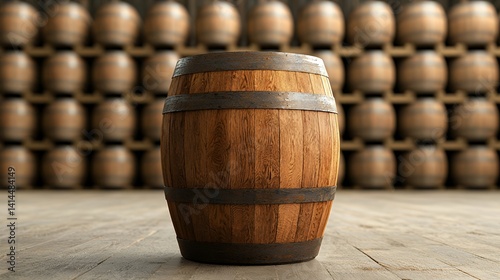 Single wooden barrel aged beverage storage cellar rustic texture dark brown craftsmanship