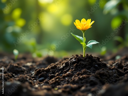 Single Yellow Flower Sprout: A Serene Nature Photography