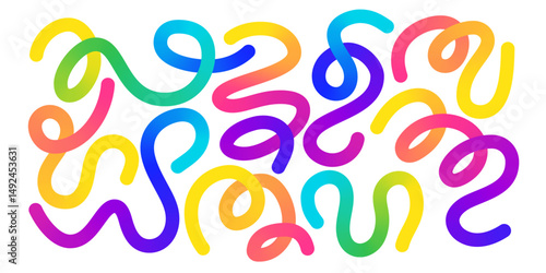 Sinuous twisting rainbow shapes - looping curvy lines, undulating swirls gradient vivid hues abstract pattern. Dynamic winding snake like organic flowing forms wavy liquid colorful texture.