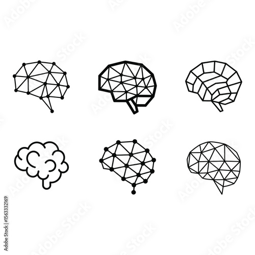 Six Abstract Geometric Brain Icons Network Connectivity and Intelligence Concepts