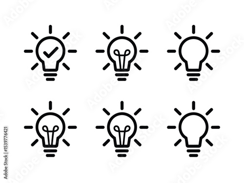 Six Black Lightbulb Icons Idea Symbols Set vector