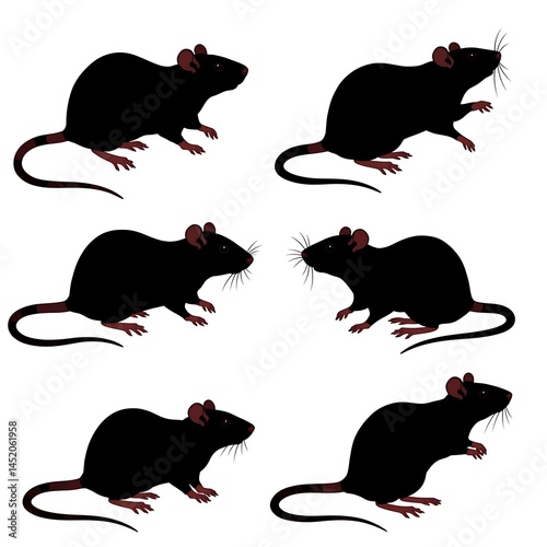 Six Black Rats: Silhouettes in Dark Hues AI Generated