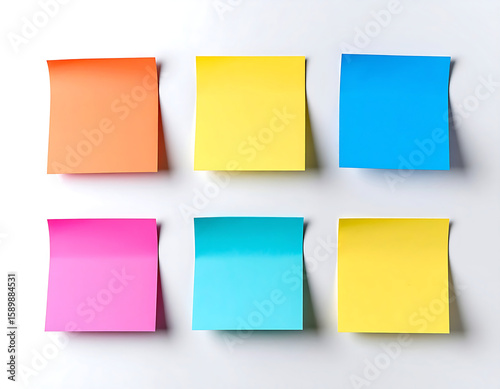 Six colorful sticky notes arranged in two rows isolated on transparent background