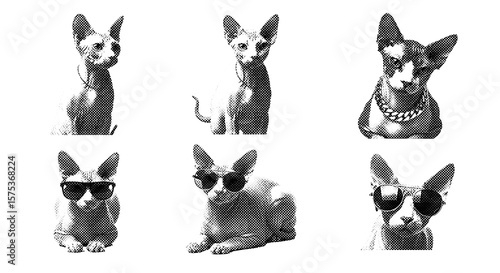 Six Cool Sphynx Cats in Stylish Black and White Portraits