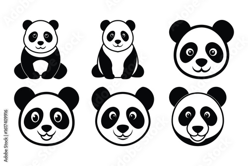 Six Cute Panda Illustrations bears animals