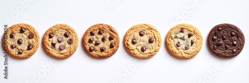Six Delicious Homemade Chocolate Chip Cookies Isolated on a White Background, The Perfect Treat