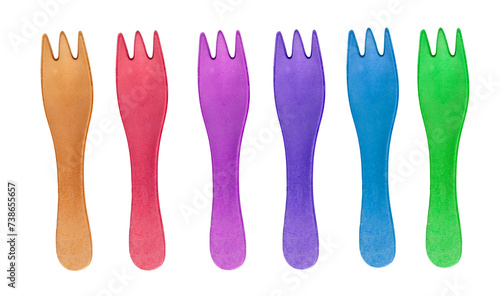 six fourchettes en bois sur fond transparent, PNG