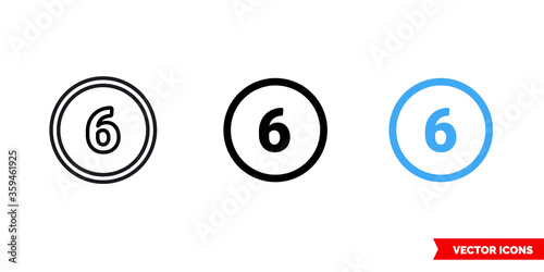 Six icon of 3 types. Isolated vector sign symbol.