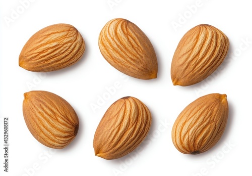 Six Light Brown Almonds on White Background