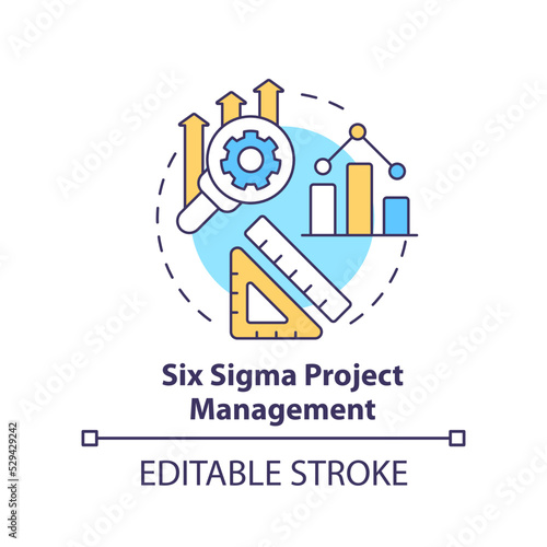 Six Sigma project management concept icon. Effective work organization abstract idea thin line illustration. Isolated outline drawing. Editable stroke. Arial, Myriad Pro-Bold fonts used