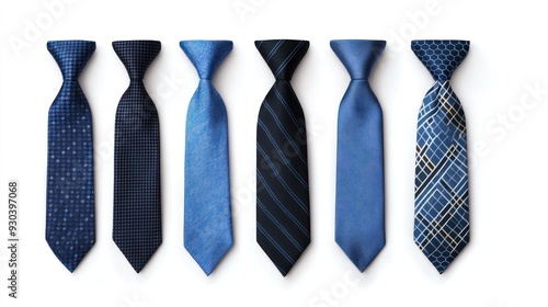 Six Stylish Blue Ties Isolated On A White Background