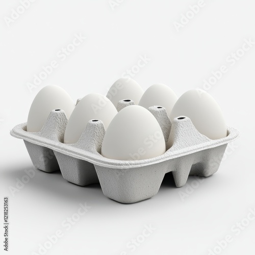 Six White Eggs in a Cardboard Carton.