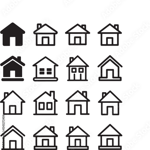 Sixteen Black House Icons Set Simple Home Symbols Collection Different Styles Minimalist Building Illustrations Vector Graphics Design Elements