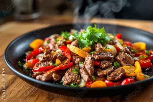 Sizzling Beef Stir-Fry with Colorful Bell Peppers and Fresh Herbs