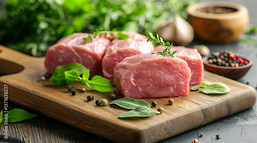 Sizzling pork cuts preparation kitchen food photography rustic close-up culinary artistry