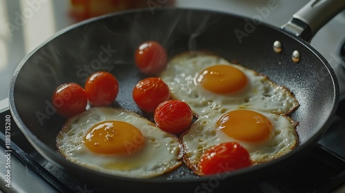 Sizzling Sunrise Breakfast: Fluffy Eggs and Juicy Tomatoes in a Pan