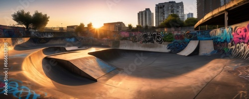 Skate park with graffiti. Extremely detailed and realistic high resolution illustration