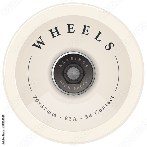 Skate Wheels Design. Longboard Wheels with Bearings. Surfskate. Vector illustration.