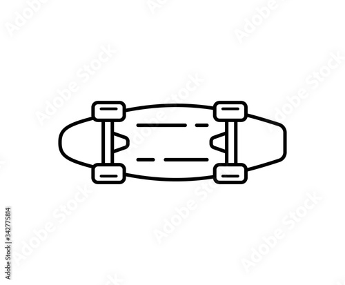 Skateboard line icon isolated on white background. Outline style. Minimal skate board design. Vector illustration.