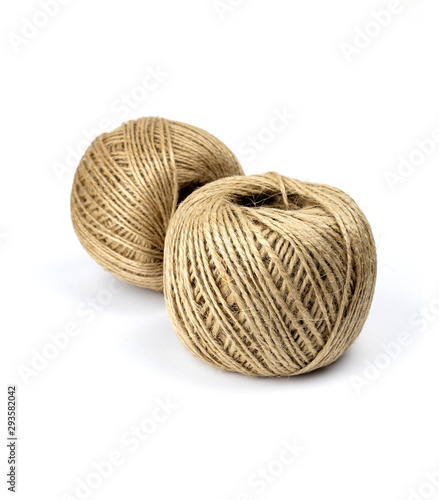 Skein of jute twine threads isolated on white background. Natural fiber for work and creativity.