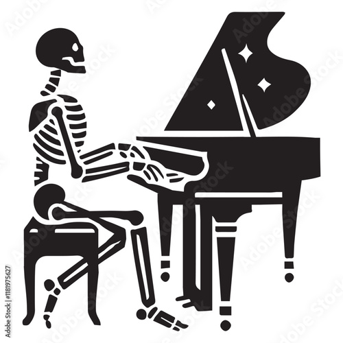 Skeleton Playing Piano illustration Vector, Virtual piano Skull Clipart Design