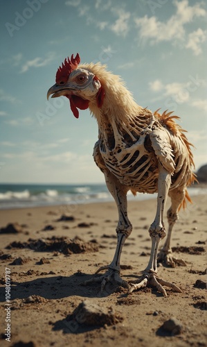 skeleton rooster in the beach