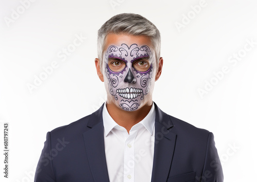 Skeleton with Gray hair isolated on white background. High quality photo