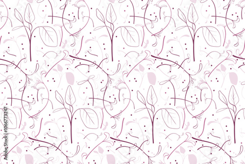 Sketch microgreen seeds vector illustration. Seamless pattern with young leaves seedlings. Amaranth raw microgreens sprouts, healthy eating concept