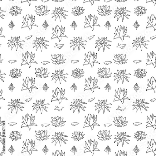 Sketch aloe vera seamless. hand drawn outline aloe pattern. Line vector natural background.