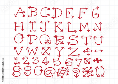 sketch arrows alphabet , Arrow font A through Z and numbers