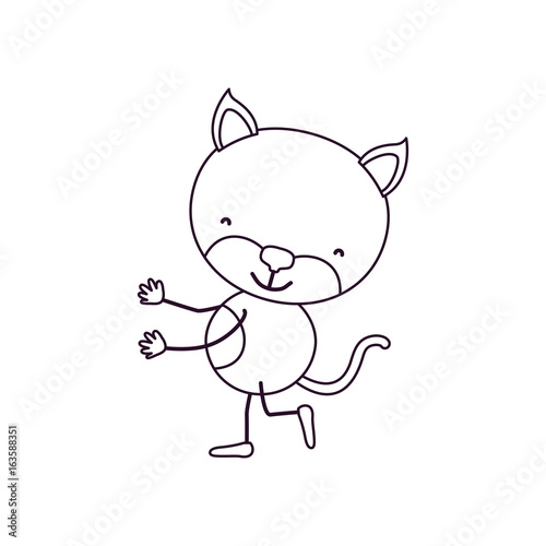 sketch contour caricature with cute kitten dancing vector illustration