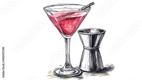 Sketch Cosmopolitan Cocktails and Shaker Hand Drawn Illustration illustration