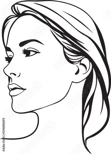 sketch Head of pensive elegant woman with long hair face icon logotype silhouette vector