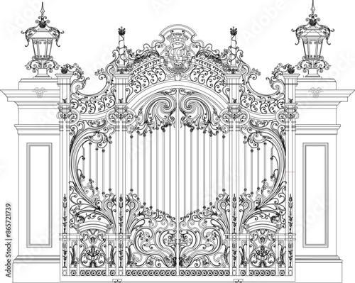 Sketch illustration silhouette vector drawing detail fence gate design full of ornate ornaments icon logo symbol floral old classic vintage ethnic traditional