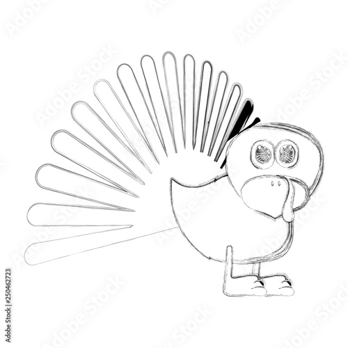 Sketch of a cute turkey. Vector illustration design