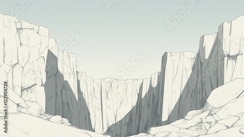 Sketch of a stark, rocky canyon landscape under a pale sky.