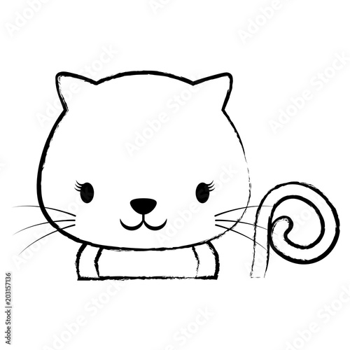 sketch of cute cat icon over white background, colorful design. vector illustration