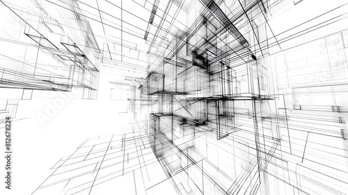 Sketch of modern architecture construction of new office building. Post-produced generative AI illustration,Abstract black and white architectural design.Abstract perspective technology background -