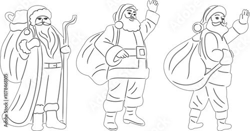 sketch santa waving hand, outline, icon, vector