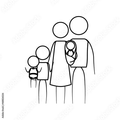 sketch thin contour of pictogram big family group in clothes