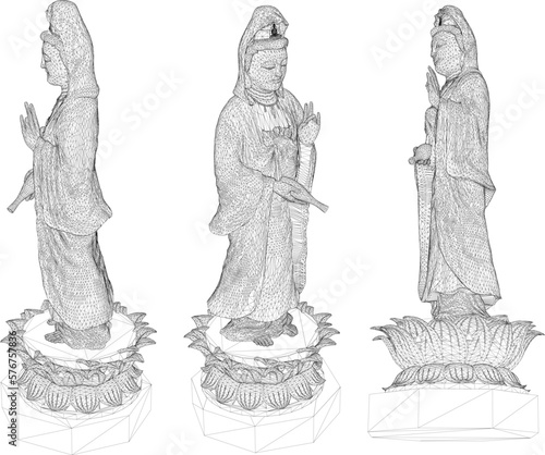 Sketch vector illustration of a statue of a holy goddess on a lotus